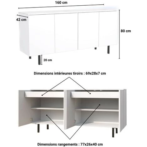 Bahut AUSTIN 4 portes, 2 tiroirs intérieurs et 2 tablettes.