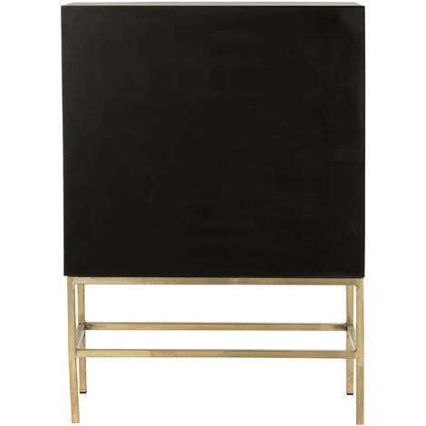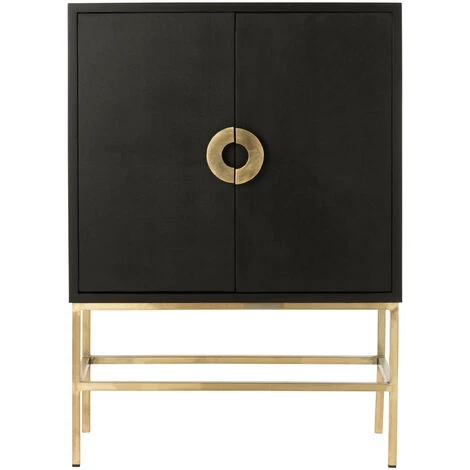 Grâce à cette armoire noire, le décor de votre intérieur aura une touche très design et élégante. Elle est conçue en manguier massif sur des pieds métal doré, ce qui vous procurera une bonne stabilité et un meuble résistant. Elle est équipée de 2 portes battantes qui s’ouvrent sur 2 étagères et 2 tiroirs pour plus de rangements.Matière : Bois de manguierPieds : MétalColoris : Noir et doréDimensions: L 107 x P 45 x H 140 cmPoids : 64 kgNombre de colis : 1Fabrication : EuropeGarantie : 2 ansNous ne livrons pas en Corse.