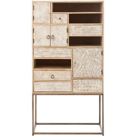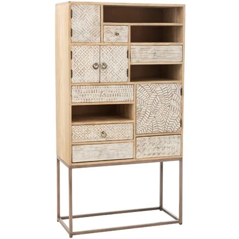 Au style original, cette armoire en bois va vous donner envie de mieux vous organiser. Les motifs qui décorent les portes et les tiroirs ne vous laisseront pas indifférent. Les 10 tiroirs risquent de vite se remplir.Matière : Bois massifCouleur : BeigeDimensions : L 85 x P 38 x 160 cmPoids : 55.5 kgNombre de colis : 1Fabrication : EuropeGarantie : 2 ans Nous ne livrons pas en Corse.
