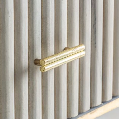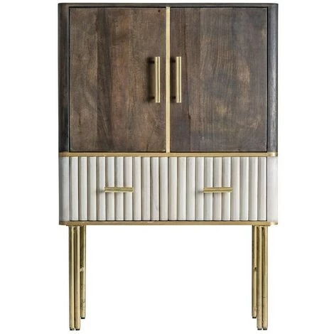 Ce superbe bahut est parfait pour embellir votre intérieur avec élégance et originalité. Sa structure est fabriquée en manguier massif montée sur des pieds en métal doré et la façade de ses tiroirs est peinte en blanc, ce qui lui confère un style art déco. Il dispose de 2 portes avec 1 étagère et 2 tiroirs vous offrant un bel espace pour optimiser votre rangement et avoir une pièce harmonieuse.Dimensions : L 100 x H 148 x P 40 cmGarantie : 2 ansNous ne livrons pas en Corse.