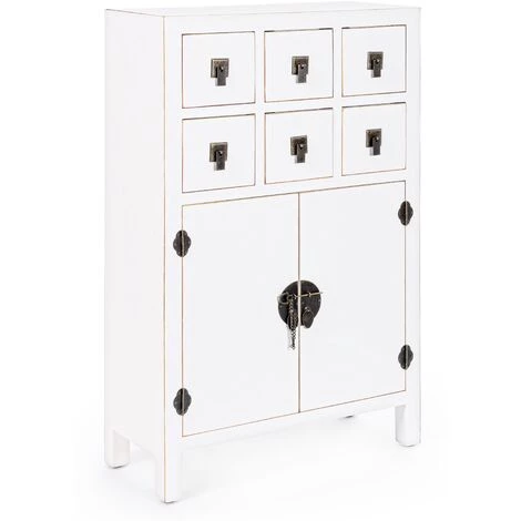 Avec ce bahut entièrement blanc vous aiderez la lumière à mieux se propager dans la pièce. Il est composé de 6 tiroirs et 6 portes pour faciliter votre organisation. En bois MDF avec en plus des pieds en bois de sapin, son équilibre est totale et sa robustesse parfaite.Matière : Bois MDFCouleur : BlancDimensions : L 63 x P 26 x H 101 cmFabrication : EspagneGarantie : 2 ansNous ne livrons pas en Corse.