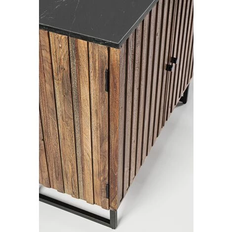 LES TENDANCES Bahut En Bois D’acacia Marron Et Noir 2 Portes Nora L 85 Cm