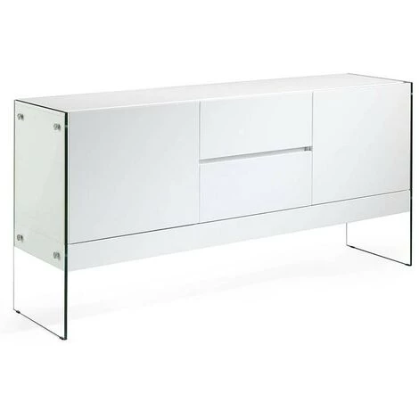 Ce somptueux buffet 2 portes et 2 tiroirs d’excellente qualitĂ© de la collection Lina affiche une ligne rĂ©solument Ă©lĂ©gante qui fera de votre sĂ©jour une pièce ultra raffinĂ©e. L’alliance du bois laquĂ© et des parois latĂ©rales en verre crĂ©e un design inĂ©dit fait de matières nobles et de lignes droites, dans lequel vous pourrez stocker tout ce dont vous avez besoin.Disponible sur plusieurs coloris.Nous ne livrons pas en Corse.