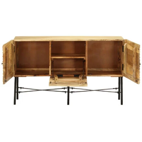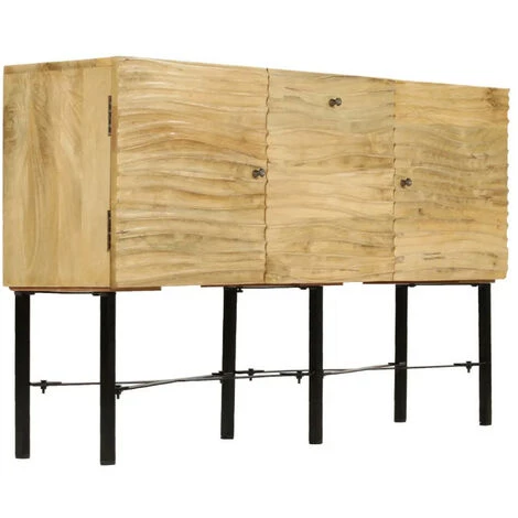 Ce joli buffet en manguier massif clair sera idéale si vous souhaitez apporter une touche naturelle et vintage à votre pièce. Il est équipée de 3 portes offrant de spacieux espaces de rangement. Ses pieds en métal se marient parfaitement avec sa structure en bois massif.Nous ne livrons pas en Corse.