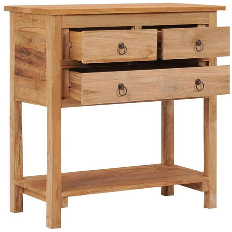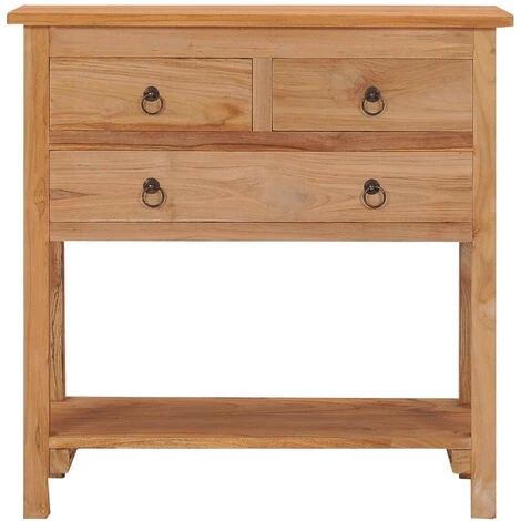 Ce buffet de style colonial dégage un charme rustique et sera un excellent supplément à votre intérieur. L’armoire latérale est fabriquée en bois de teck massif, ce qui la rend très durable et résistante à l’usure. Le dessus robuste est idéal pour placer des objets décoratifs comme des vases ou des plantes en pot. Cette armoire offre un grand espace de rangement pour garder divers articles bien organisés. Ce produit est facile à assembler.Matériau : Bois de teck massifDimensions : 78 x 35 x 80 cm (L x l x H)Avec 3 tiroirsL’assemblage est requisNous ne livrons pas en Corse.