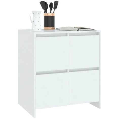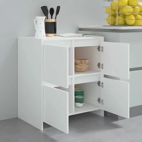 Ce buffet, doté d’un design minimaliste, est un supplément pratique mais également décoratif à votre maison. Avec 4 portes, l’armoire latérale offre un grand espace de rangement pour les livres, les appareils multimédia et d’autres articles. Le dessus de table robuste est idéal pour afficher des objets décoratifs, des cadres photo et des plantes en pot. De plus, l’armoire de rangement est facile à nettoyer avec un chiffon humide.Couleur : blancMatériau : aggloméréDimensions : 70 x 41 x 75 cm (l x P x H)L’assemblage est requisAVERTISSEMENT: Afin d’éviter le renversement, ce produit doit être utilisé avec le dispositif de fixation murale fourni.Nous ne livrons pas en Corse.