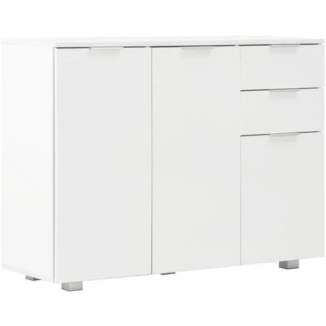Gardez tout bien rangé dans votre salon avec notre élégant buffet ! Ce buffet pratique répondra à vos diverses exigences et sera un complément idéal dans votre chambre. Fabriqué en aggloméré avec une finition blanche brillante, le meuble à tiroirs dégage une apparence raffinée et est extrêmement stable et durable. De plus, équipé de 2 tiroirs et de 3 portes, le buffet offre un grand espace de rangement pour vos divers objets, rendant votre pièce propre et bien rangée. Ce meuble de rangement très brillant est facile à nettoyer. Améliorez votre décoration intérieure avec notre élégant buffet !Couleur : blancMatériau : aggloméré avec une finition brillanteDimensions : 107 x 35 x 76 cm (l x P x H)Avec 2 tiroirs et 3 portesAVERTISSEMENT : afin d’éviter qu’il ne bascule, ce produit doit être utilisé avec le dispositif de fixation murale fourniNous ne livrons pas en Corse.