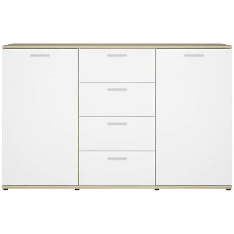 LES TENDANCES Buffet Blanc Et Chênes De Sonoma 2 Portes Et 4 Tiroirs Vendôme 120 Cm