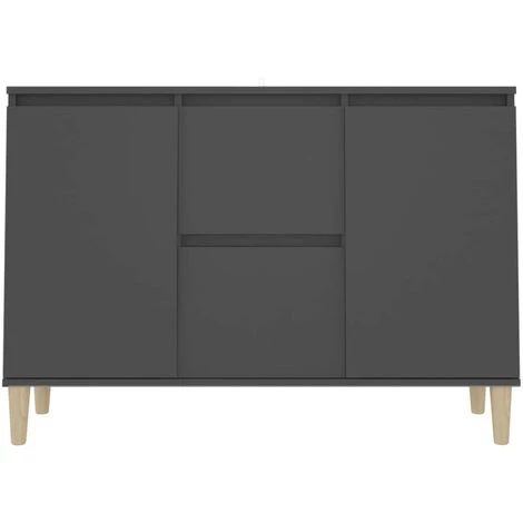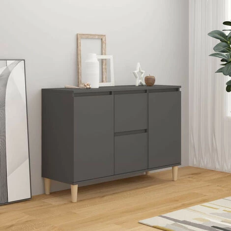 Ce buffet apporte une touche d’élégance et un aspect de classe à votre espace de vie. Cette armoire latérale est fabriquée en aggloméré, ce qui garantit sa robustesse, sa durabilité et son service à long terme. Les pieds en bois assurent sa stabilité. La bibliothèque comprend 2 tiroirs et 2 portes, offrant un grand espace de rangement pour vos objets. Vous pouvez également placer des objets décoratifs et des cadres photo sur le dessus robuste. De plus, le meuble de rangement est facile à nettoyer avec un chiffon humide.Couleur : grisMatériau : aggloméré, bois massif d’eucalyptusDimensions : 103,5 x 35 x 70 cm (L x l x H)L’assemblage est requisNous ne livrons pas en Corse.