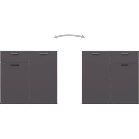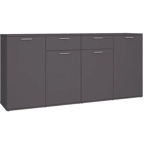 Ce buffet doté d’un design minimaliste sera un ajout pratique mais également très décoratif à votre maison. Avec 4 portes et 2 tiroirs au total, le buffet offre un grand espace de rangement pour les livres, les appareils multimédias et d’autres objets. Le dessus robuste est idéal pour exposer des objets décoratifs, des cadres photo ou des plantes en pot. De plus, cette armoire est facile à nettoyer avec un chiffon humide.Couleur : grisMatériau : aggloméréDimensions totales : 160 x 36 x 75 cm (L x l x H)Dimensions (chacun) : 80 x 36 x 75 cm (L x l x H)Avec 4 portes et 2 tiroirsL’assemblage est requisRemarque : ce produit contient 2 buffets de 80x36x75 cm chacunAVERTISSEMENT : Afin d’éviter qu’il ne bascule, ce produit doit être utilisé avec le dispositif de fixation murale fourniNous ne livrons pas en Corse.