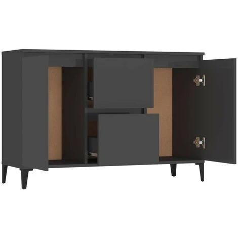 Ce buffet apporte un charme industriel à votre coin salon. L’armoire latérale est suffisamment solide et durable pour assurer un service de longue durée. Les pieds en métal lui assurent une stabilité supplémentaire. Cette bibliothèque comprend 2 tiroirs et 2 portes, offrant un grand espace de rangement pour vos objets. Vous pouvez également placer des objets décoratifs et des cadres photo sur le dessus robuste. De plus, le meuble de rangement est facile à nettoyer avec un chiffon humide.Couleur : gris brillantMatériau : aggloméré, métalDimensions : 104 x 35 x 70 cm (L x l x H)L’assemblage est requisNous ne livrons pas en Corse.