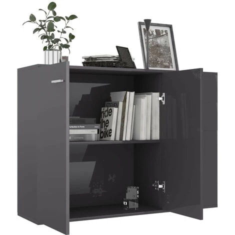 LES TENDANCES Buffet Gris Brillant 105x30x75 Cm