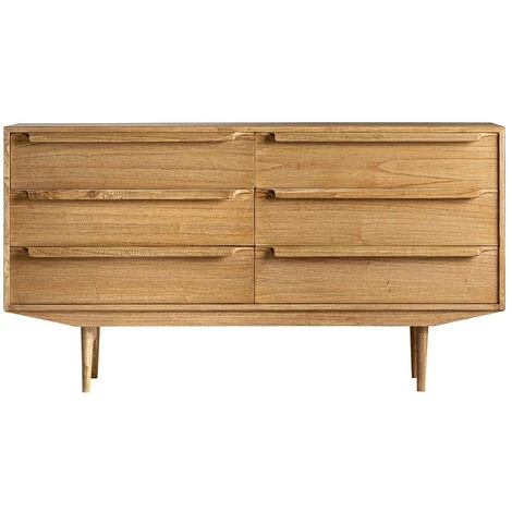Cette charmante commode est en bois massif de Mindi clair. Elle est équipée de 6 tiroirs de rangements pratiques qui permettront de stocker objets ou vêtements de façon organisée. L 150 x H 80 x P 47 cm – 29 kgTaille des tiroirs: L 68 X P 38 x H 13 cmTaille des pieds: L 4 x L 4 x H 24 cmPieds à monterStructure bois massif de MindiCouleur bois naturelCollection haut de gammeFabrication européenne Garantie : 5 ansNous ne livrons pas en Corse.