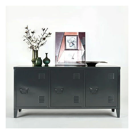 Rendez votre intérieur plus commode et mieux rangé en optant pour ce buffet 3 portes. De conception solide et durable, ce buffet séduit encore plus par sa robustesse et sa solidité en raison du métal dont est faite sa structure. Il est fonctionnel et très pratique en vous permettant de ranger avec facilité vos vaisselles et vos linges et d’y exposer vos objets de décoration. Ce buffet plaît par l’élégance et la beauté qui ressortent de son design raffiné et sophistiqué. Cette élégance a également beaucoup à voir avec son coloris noir qui se fondra bien dans n’importe quel décor. Produit de la gamme ARISTO, ce buffet trouvera sa place au salon et dans la salle de séjour