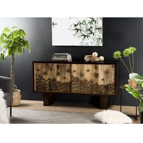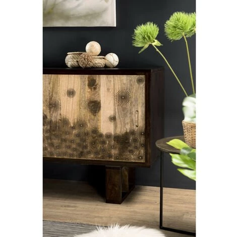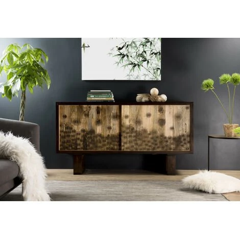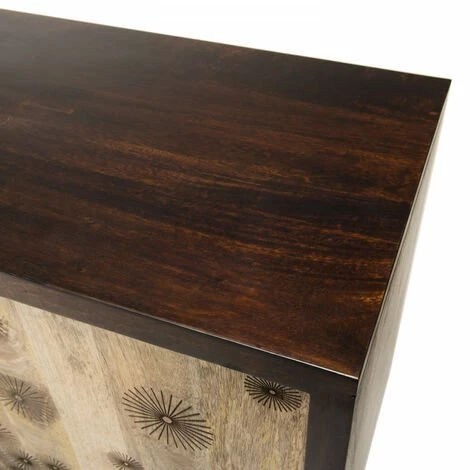 Buffet bois Manguier naturel 160x45cm 2 portes coulissantes 1 étagère motifs noirs Java. Dimensions : 160 x 45 x 85 cm. Article en Manguier et contre plaqué (arrière). Esprit typiquement indien qui dépaysera votre salon. Un mélange harmonieux entre chaleur du manguier et les motifs orientaux. Meuble monté, pieds à visser