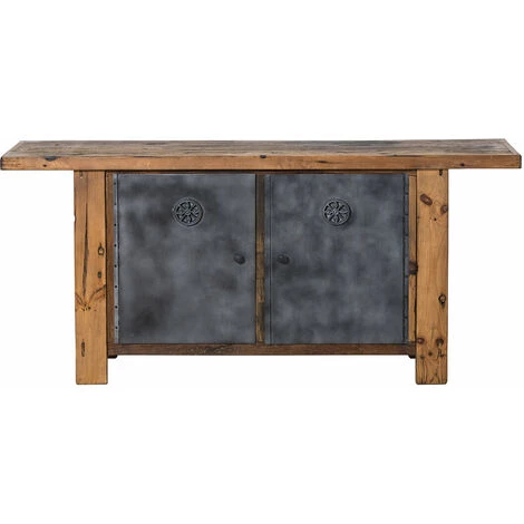 Amateurs d’authenticité ? Cette pièce est sans aucun doute faite pour vous ! Son design est entièrement inspiré des établis d’antan et son aspect naturel se reflète grâce à ses imperfections et irrégularités. Conçu en pin recyclé, ce buffet est reconnu pour sa stabilité et sa robustesse. Ce nouvel accessoire de déco vous offre de plus des espaces de rangements très recherchés. Vous bénéficiez de deux portes battantes derrière lesquelles vous pourrez ranger votre vaisselle sans difficulté. Chaque modèle est unique et dispose volontairement d’imperfections et d’irrégularités de façon à leur conférer un effet ancien, vieilli et retravaillé. Ce meuble est livré monté.