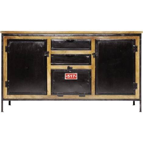 Ce buffet nous fait craquer grâce à son look, il apportera une touche de caractère à votre pièce. Composé de 2 tiroirs, 1 trappe, 2 portes ainsi que 2 étagères ce buffet pourra stocker votre vaisselle.