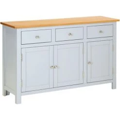 Ce buffet a été habilement conçu en bois de chêne massif durable et en bois d’acacia. Les bords nets et les poignées en métal poli complètent son style champêtre moderne. Et le dessus rectangulaire est idéal pour y poser un téléphone ou y exposer des objets décoratifs comme les cadres pour photos ou les plantes en pot. Du plus, les trois tiroirs et les deux armoires offrent un espace de rangement suffisant pour ranger les ustensiles de cuisine dans votre cuisine ou les paperasses dans votre bureau.
