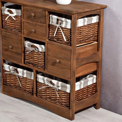 - 1 x commode avec 5 tiroirs à panier et 4 tiroirs en bois