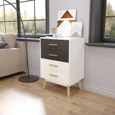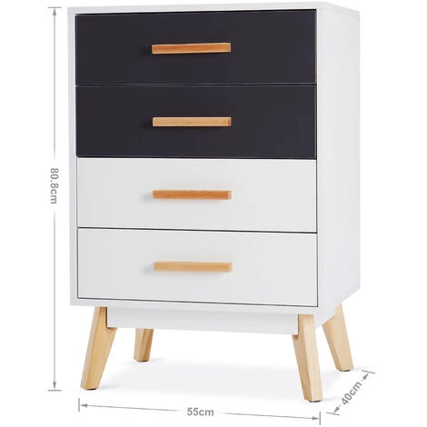 1.【Design Unique】Ce produit utilise la combinaison du blanc, du gris et d’éléments en bois massif pour augmenter la sensation de modernité, le style est simple. Les tiroirs blancs et gris peuvent être interchangés selon les préférences personnelles.