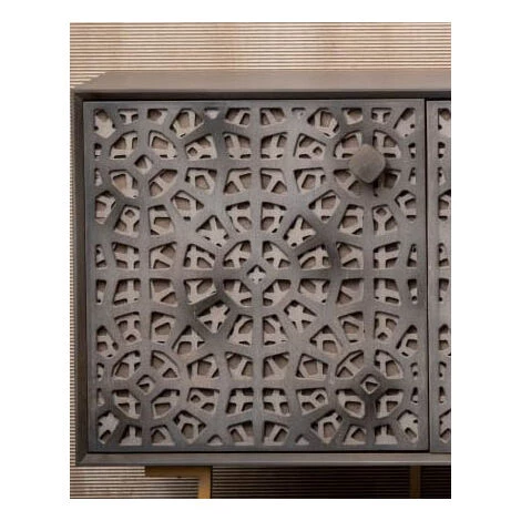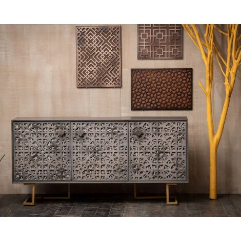 IDMARKET Buffet Bas 3 Portes ESTEL En Métal Gris Foncé – Gris