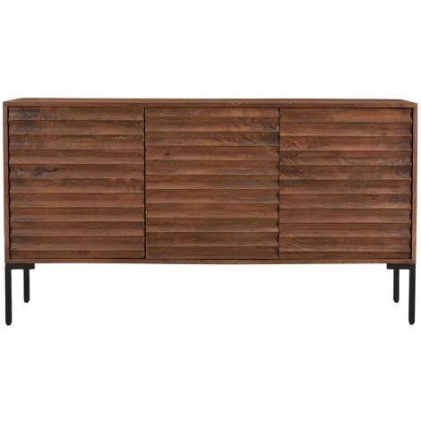 Ce buffet au design affirmé est issu d’un superbe travail sur la matière. Réalisé en manguier massif, il se distingue par sa façade qui semble creusée par des sillons. Ce bois chaleureux et exotique a été travaillé de façon artisanale faisant de chaque buffet une pièce unique. La patine marron foncé appliquée sur le buffet nourrit le bois tout en renforçant un peu plus son caractère authentique.