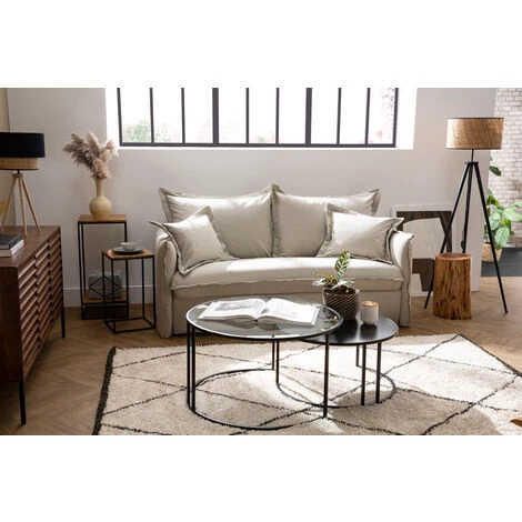 Matière : manguier massif, métal et dos en panneaux de fibres de bois