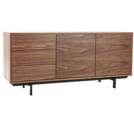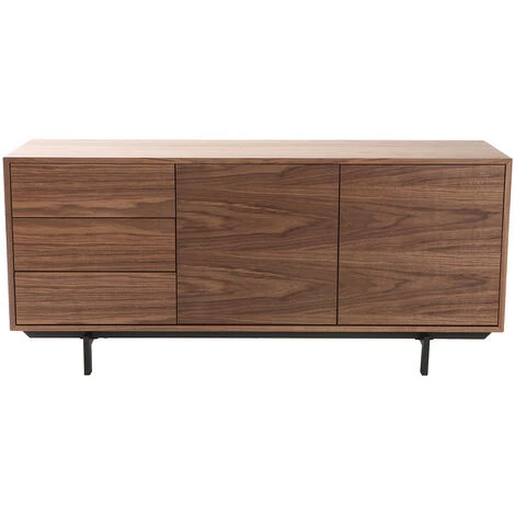 En panneaux de fibres de bois, ce buffet possède une finition noyer, ce buffet repose sur une piètement élégant en métal noir. Il deviendra vite la pièce maîtresse de votre salon, apportant rangement et design !