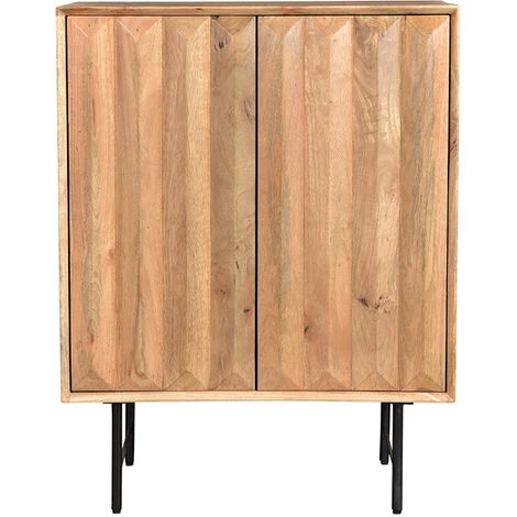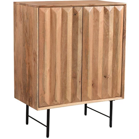 Travaillées artisanalement, les portes semblent taillées comme des diamants. Le motif graphique en 3D qui se dessine apporte de la modernité à cet ensemble en bois massif. Ce sont les volumes sculpturaux du buffet haut AGRA qui font tout son charme. Moderne par son relief singulier, authentique et brut grâce à une structure en manguier artisanale : ce petit buffet au design inédit est une pièce aux multiples facettes !
