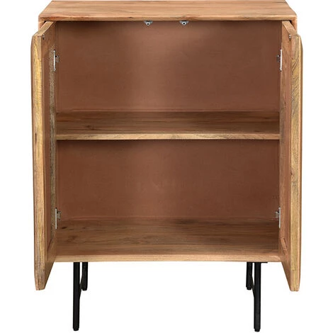Pratique, le modèle AGRA se glisse partout ! Petit salon, bureau, chambre, cuisine… avec ses petites dimensions (L70 x P40 x H90 cm), il trouvera facilement sa place. Ses deux portes s’ouvrent grâce à un système push-pull, esthétique et fonctionnel, et renferment un bel espace de rangement. Vous apprécierez également la robustesse de ses matériaux. Avec sa structure en bois massif et son piètement en métal, le buffet AGRA est un petit meuble de rangement solide.