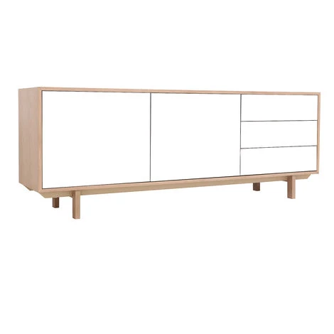 Idéalement placé dans une salle à manger, le buffet SID vous offre deux larges placards avec étagères ainsi que trois tiroirs. Ultra fonctionnel pour ranger toute votre vaisselle, votre linge de table, nappes ou serviettes et les avoir à porter de main.