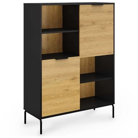 Le buffet bibliothèque avec 2 portes et 2 étagères vous séduira par son allure sobre et élégante, ses lignes droites et ses teintes neutres dans un mélange de bois et de métal. Le buffet haut ARWEN en bois couleur chêne et noir vous offre un espace de rangement spacieux pour organiser tout votre linge, votre vaisselle ou vos documents, livres et bibelots. Son design contemporain et chic apportera une touche de charme et d’authenticité à votre pièce à vivre. Le fini noir et couleur chêne avec les fines poignées noires et les pieds tubes en métal noir subliment l’ensemble.