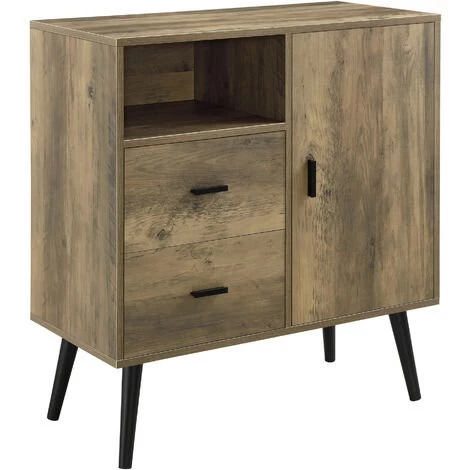 – meuble de stockage stylé à 2 tiroirs et 3 surfaces de rangement : 1 ouverte et 2 fermées