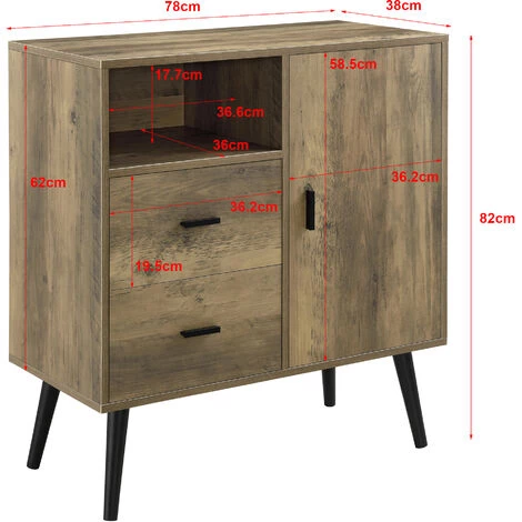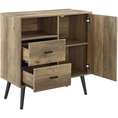 Cette commode pratique et décorative sera un accessoire parfait de votre maison. En plus de deux compartiments, elle contient également deux tiroirs et un compartiment ouvert.