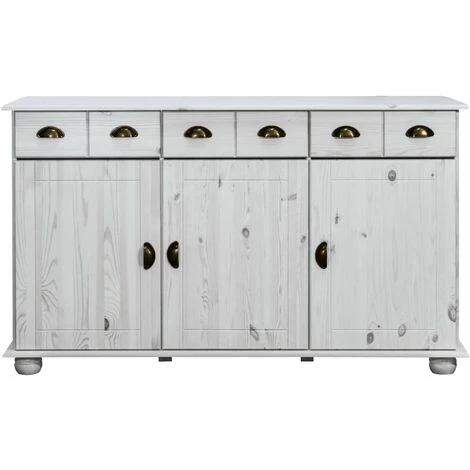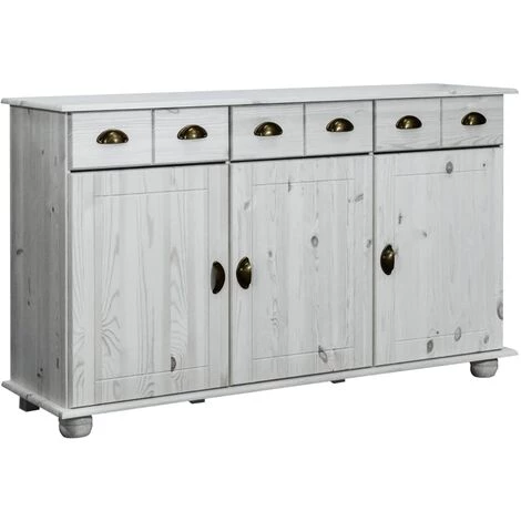 Ce buffet en bois ajoute un style vintage et est un choix parfait pour votre salon. L’armoire de rangement est en bois de pin massif, ce qui la rend stable et durable. La poignée incluse facilite l’ouverture de la porte et du tiroir. Cette armoire dispose de trois tiroirs et trois portes, offrant amplement d’espace de rangement pour vos articles. De plus, le dessus robuste est idéal pour exposer des objets décoratifs tels que des cadres photo, des plantes en pot, des vases, etc. Remarque importante : les couleurs et les grains peuvent varier d’une pièce à l’autre, rendant chaque pièce unique ; la livraison est aléatoire.