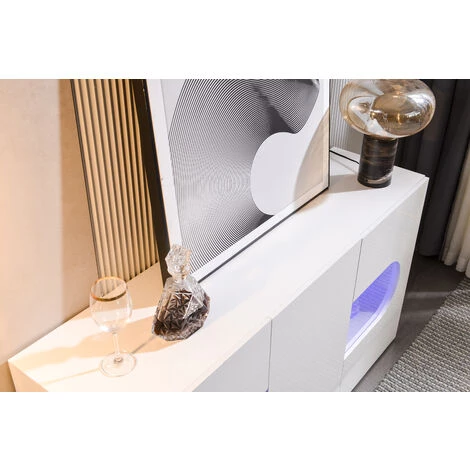 1. Grand espace de rangement : trois grands espaces de rangement avec des panneaux de porte en verre peuvent placer toutes sortes de plats de votre famille.Matériau de haute qualité : il est fabriqué en tôle de haute qualité, le panneau de porte est fini brillant et il y a un film protecteur à l’extérieur, veuillez le retirer avant utilisation, tapis des deux côtés et du dessus.3. Avec éclairage LED : la lumière peut être projetée dans votre salon à travers le panneau de verre.Un total de 16 couleurs vives peut être contrôlé via la télécommande.4. Facile à assembler car il comporte des pièces marquées et des instructions claires (deux personnes sont recommandées)5. Dimensions (CM) (L x L x H) : 150x81x40Noter bien :1. En raison de la lumière ou de l’affichage, la couleur réelle du produit peut être légèrement différente de celle de l’image.2. Une mesure manuelle a été utilisée et il peut y avoir des erreurs raisonnables.3. Pour des raisons logistiques, l’heure d’arrivée des deux colis peut être différente, veuillez comprendre