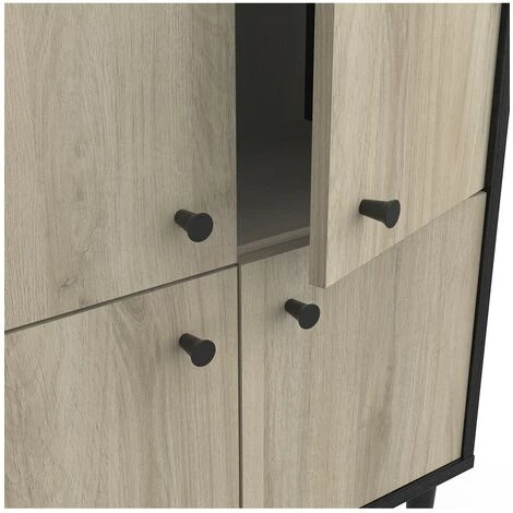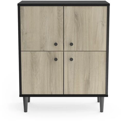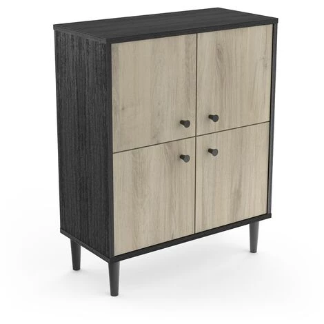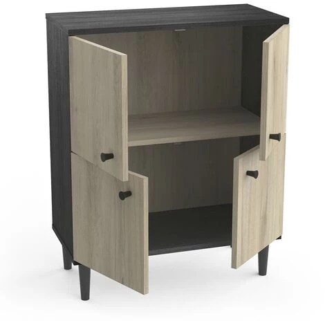 Pour créer du rangement dans n’importe quelle pièce de la maison, notre Petit Buffet 4 Portes Effet Bois L61cm – ARTY est idéal ! Avec ses 4 portes ouvrant sur un grand espace séparé d’une étagère, vous pourrez y stocker aisément toutes vos affaires peu importe la pièce où vous placerez ce meuble. Grâce à son mélange de coloris noir et bois brûlé ou bois clair et vert vous n’aurez pas de mal à l’inclure dans une décoration moderne.