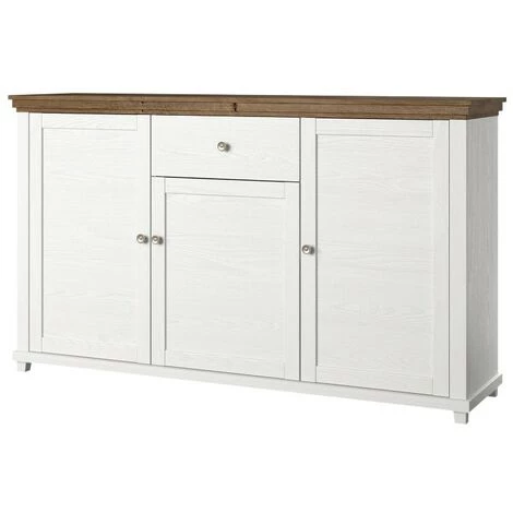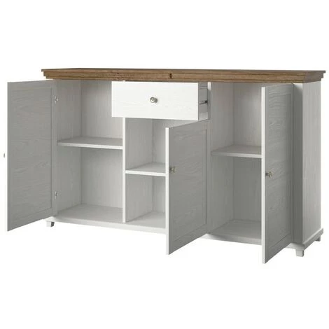Buffet collection ASSIA 160cm coloris frêne blanc et chêne. 3 portes et 1 tiroir.