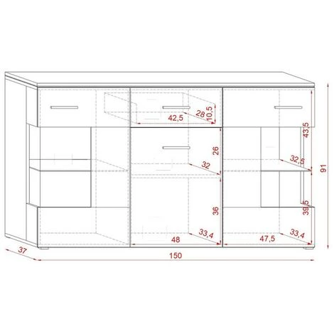 – DIMENSIONS : L 150 x H 91 x P 37cm.