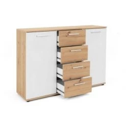 ARGONAUTA Buffet Avec Deux Portes Et Quatre Tiroirs Chêne Blanc Jacky 2 120x35x H85 Cm