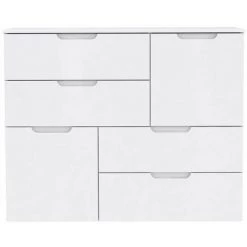 AUTRES PILVI Buffet Bas 2 Portes 4 Tiroirs – Blanc Mat – L 122,6 X P 34,2 H 88,1 Cm