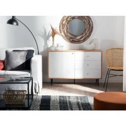 BELIANI Commode Blanche / Effet Bois Clair 3 Tiroirs – Blanc