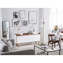 BELIANI Commode Effet Bois Foncé Et Blanche 3 Portes – Bois Foncé
