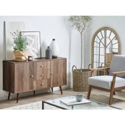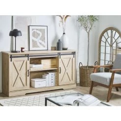 BELIANI Commode Effet Bois Clair 3 Tiroirs 2 Portes – Bois Clair