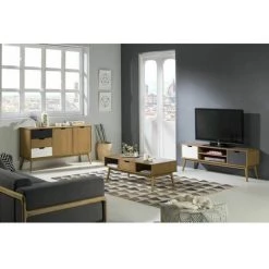 Buffets BOBOCHIC – Buffet 140 Cm ALMA Gris, Blanc Et Bois Clair – Marron