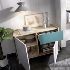 CAESAROO Buffet 105×43 Cm Penny Avec Deux Portes Et Un Tiroir Multicouleurs | Multicolor