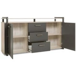 CAESAROO Buffet De Salon 135 Cm Abby Graphite Et Naturel Avec Trois Portes | Graphite Et Naturel