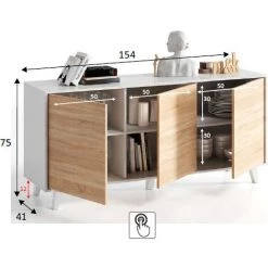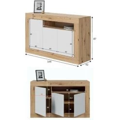 CAESAROO Buffet Salon 154 Cm Blanc Brillant Et Chêne Canadien Avec Trois Portes | Couleur