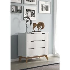 CASARIA Commode En Bois JERSEY Blanche Buffet Blanc Dressoir Style Intérieur Séjour 76cmx65cmx35cm