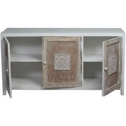 COTECOSY Buffet 4 Portes Soho 95x111cm Motif Oiseaux Et Fleurs Bois Naturel Et Marron – Bois